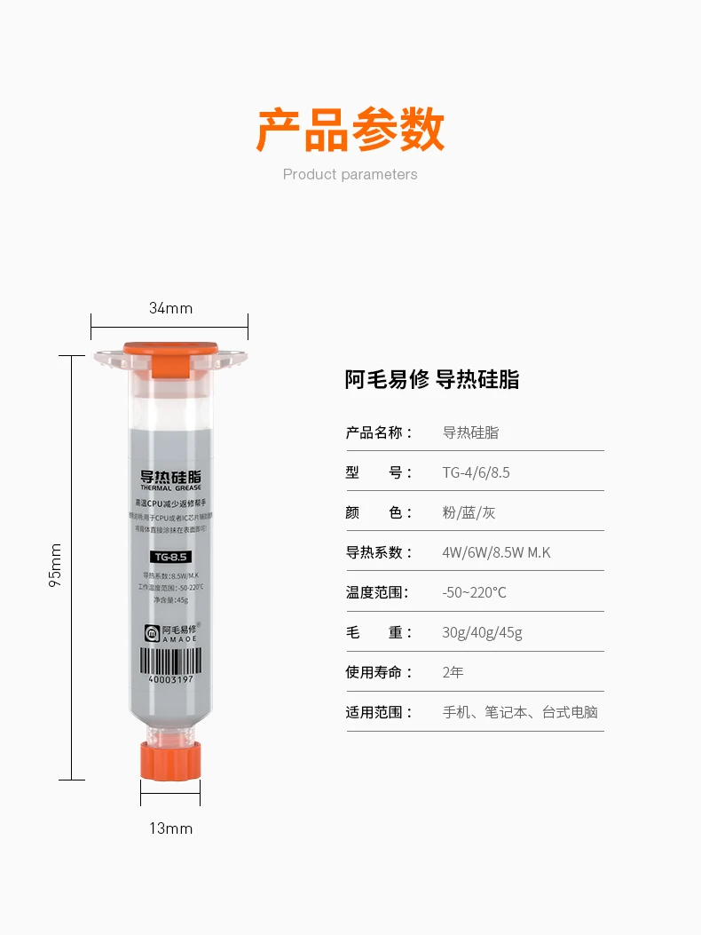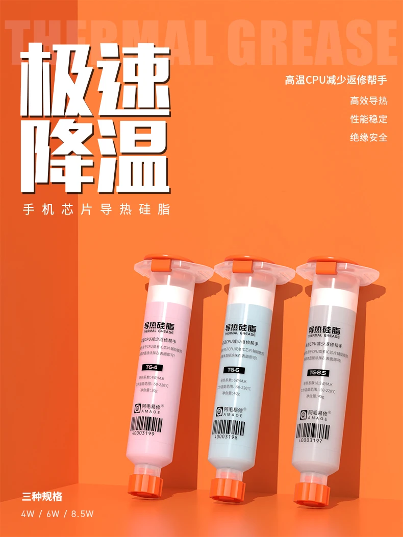 1Pcs AMAOE Thermal Grease 10Ccc pink/Blue/grey thermal paste Thermal conductivity 4W/6W/8.5W for phone laptop computer CPU